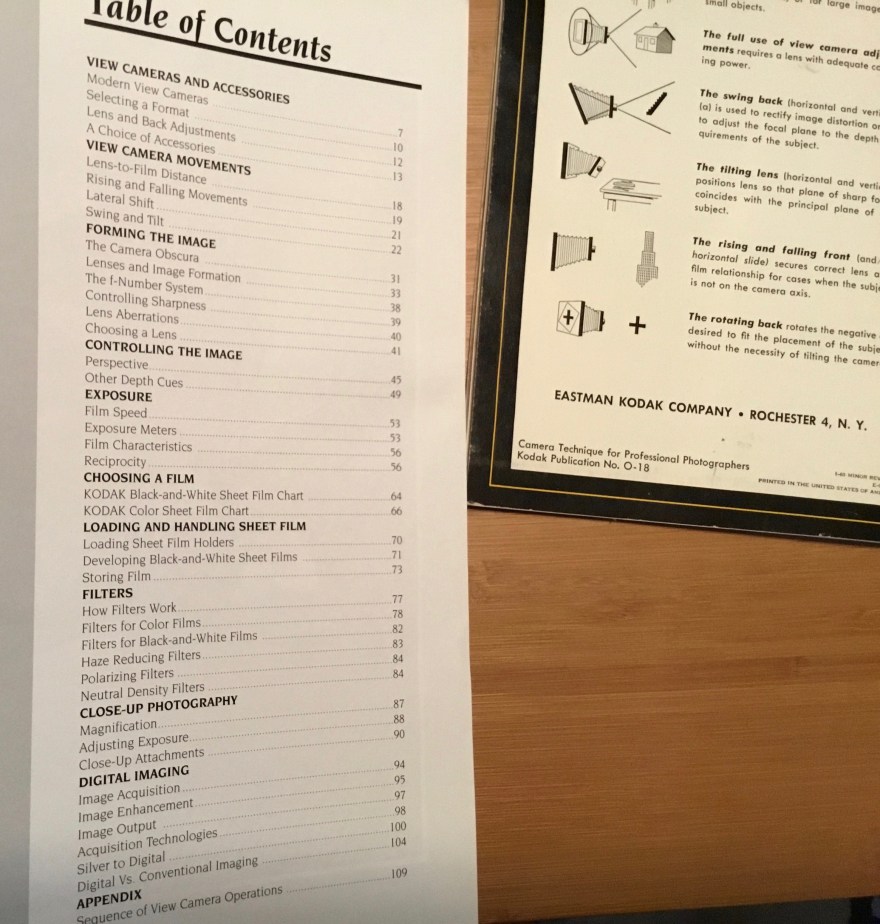 View Camera Technique, Leslie Stroebel is a standard text from RIT and similar colleges. It powered many courses during the explosion of photography at colleges. Not the fine art schools that smelled of paint and plaster, but almost everywhere else. The contents provide a topic guide, even if you don’t get the book. As said before, I don’t recommend it for this century’s photographer. (I also avoid any Ansel Adams book.)
