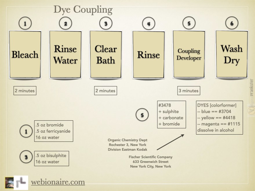 Dye coupling Cyan – 2,4 dichloro napthol Magenta – p-nitrophenyl acetonitrile Yellow – acetyl 2,5 dichloroanilide Share this: Share on Facebook (Opens in new window) Facebook Email a link to a friend (Opens in new window) Email Share on Pinterest (Opens in new window) Pinterest Share on Mastodon (Opens in new window) Mastodon Like Loading... Related Posted on September 27, 2013August 23, 2024 Posted in uncategory