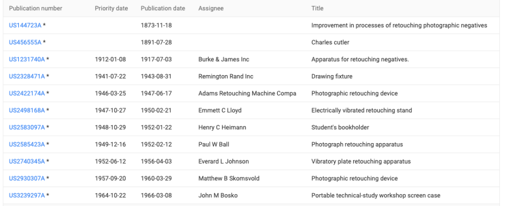 The Adams Retouching Machine Not associated with the photographer named Adams. patent list for retouching machines. Classic hand retouching of negatives and prints. Share this: Click to share on Facebook (Opens in new window) Facebook Click to email a link to a friend (Opens in new window) Email Click to share on Pinterest (Opens in new window) Pinterest Click to share on Mastodon (Opens in new window) Mastodon Like Loading... Related Posted on August 13, 2015June 14, 2023 Posted in labnotes, olden ways