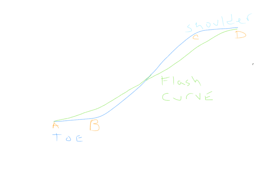 With bump raising the shadows up the curve, and flash lowering the highlights down the curve, we get a longer straight line image; more linear. This linear image is what a digital sensor provides. Straight line, not S-curved response.