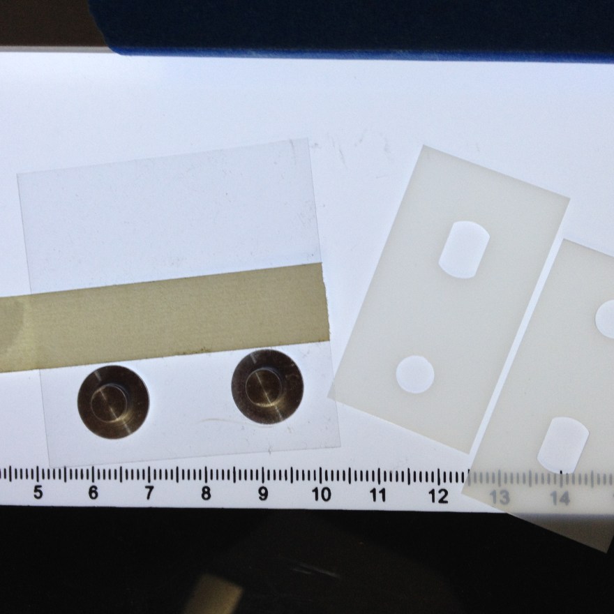 printmakers have use “buttons” and “tabs” for decades. These are much more current. They are standard sized for at hand punches. The oblong slot allows easy on, as well as permitting size changes of support material.