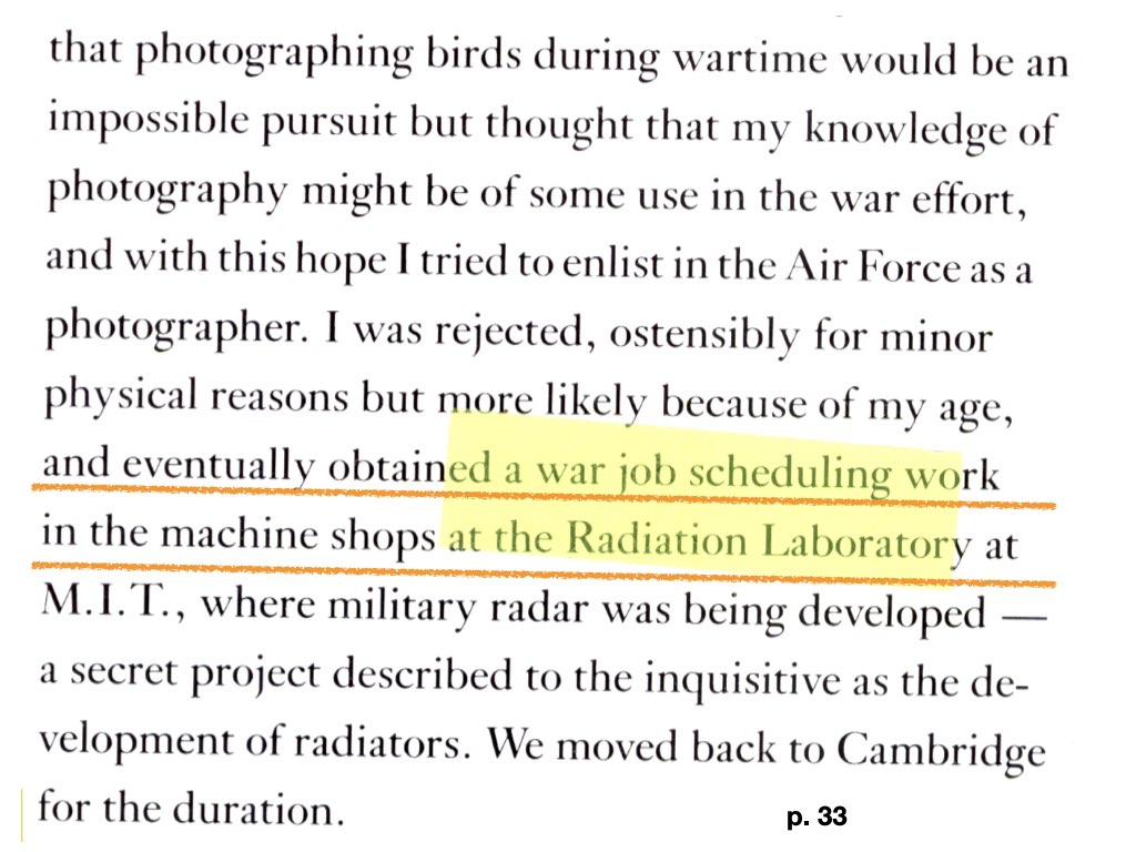 And in 1987, the fuller tale: he was a clerk who expedited (scheduled) work within the shops at the Radiation Laboratory. He did help develop radar, along with several thousand others at the Rad Lab.