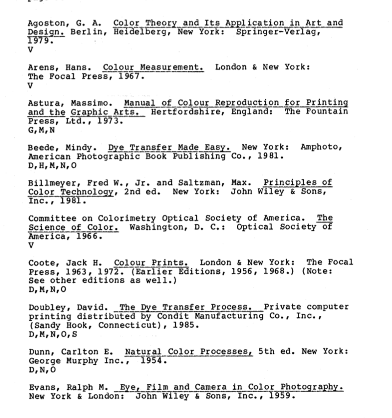 Items from a color bibliography designed for those doing assembly processes — either rollup, or laydown forms.