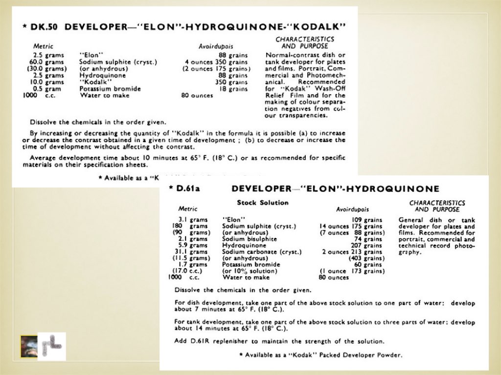 Final Final: The formulas used by most dye transfer labs until wide acceptance of HC-110 around 1970.
