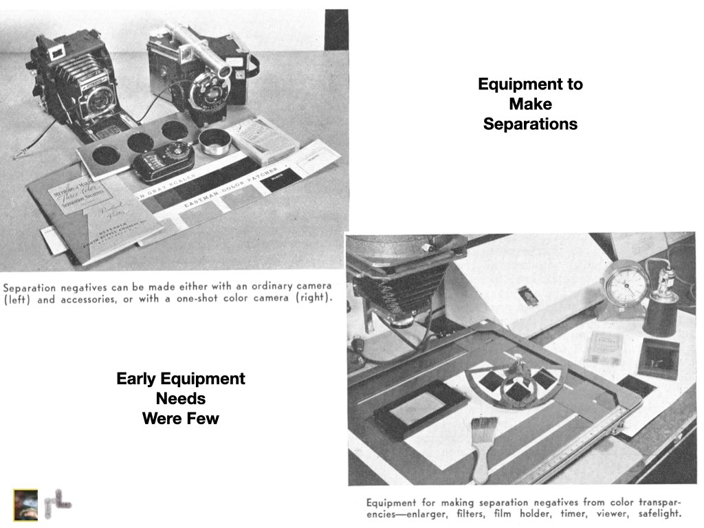 handmade color was once the main way of making a color print. At first, obviously, the first color photograph was made by a technician — not purchased, but made. That process was an assembly process. The print was made by layering separate images until they formed the final single print. This was the synthesis step in a “multi-color” process.