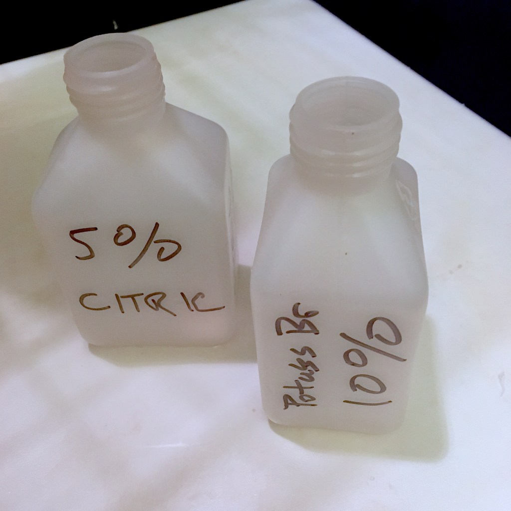 keep small bottles of ready to use Addenda. These are for use with paper developers– amidol in this instance.