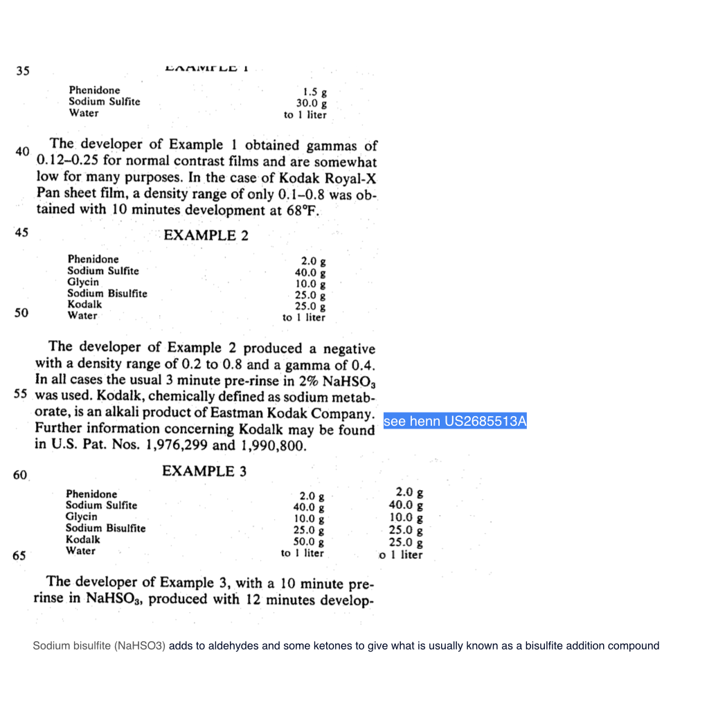 The notes in the patent are more useful to me than the formulations of the patent .. The notes to Kodak cover how to package a dry formulation of some thing like a D76 ..