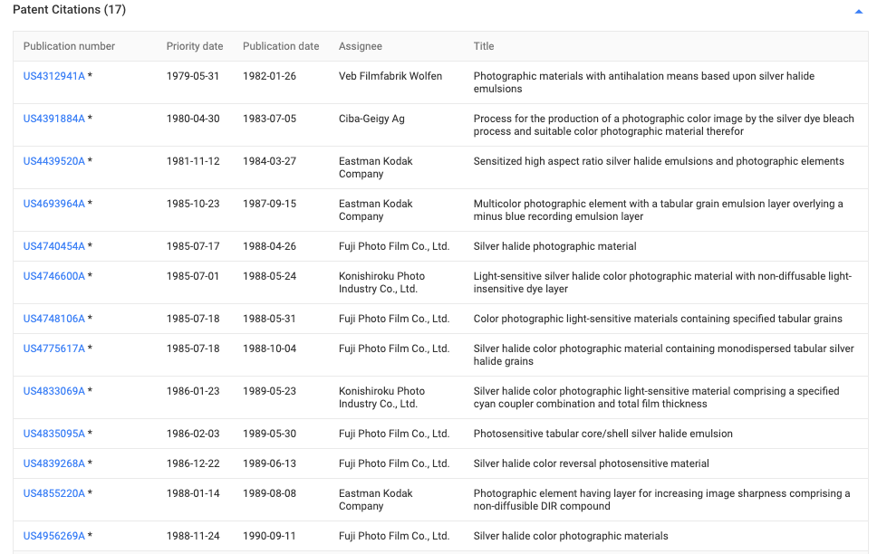 Photographic emulsions are disclosed comprised of radiation sensitive silver iodobromide grains, at least 50 percent of the total projected area of said silver iodobromide grains being accounted for by tabular grains exhibiting a mean tabularity of greater than 5, at least 10 percent of which are comprised of two opposed parallel major crystal faces, a host stratum having an iodide content of at least 4 mole percent, and laminar strata containing less than 2 mole percent iodide interposed between said host stratum and said opposed major crystal faces.The emulsions are characterized in that each of the laminar strata is comprised of a surface layer forming one of the major surfaces and having a thickness in the range of from 20 to 350 Å and a subsurface layer located immediately beneath and in contact with the surface layer containing a hexacoordination complex of a Group VIII period 4 or 5 metal and at least three cyanide ligands. InventorEric L. BellKenneth J. ReedMyra T. Olm // be sure to check the 27 ‘cited by’ items, particularly those by Kodak.