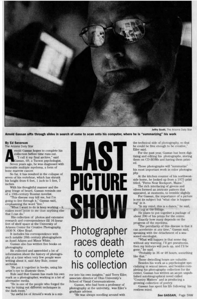 following up with more Camera Lucida matters. The final Journal was by Arnold Gassan. Arnold Gassan (1930-2001) was an American photographer, author, and psychologist. Gassan became a licensed psychologist in Arizona in 1991.