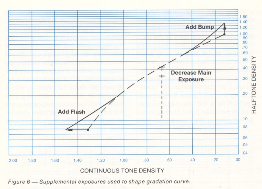 Darkroom lab exposure have 3 stages of exposure possible. Think of them as being in relation to sequence of exposure to the unprocessed emulsion. An exposure before the image exposure, the image forming exposure, and the last being after the image has been exposed. These exposures combined are used to shape the curve shape of the finished image. This method was a key skill in pre-press labs. It was also used by commercial dye-transfer labs to a lesser degree, mainly because few labs had staff skilled in both commercial processes. Industry divided the knowledge into market segments, not the schools.
