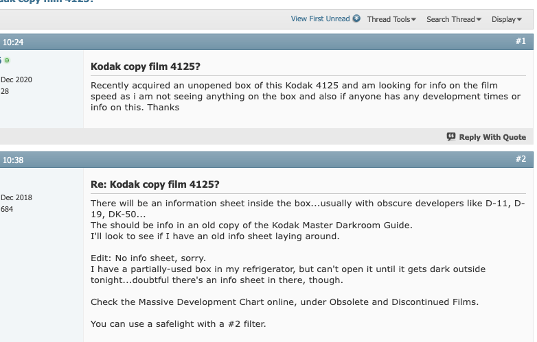 We are in times of out dated film — film from unknown storage — film without datasheets. So, to the netfora with a question; like the camera counter of last century, except, these people are retired accountants, roofers, support staffers. Few of them worked as photographers; fewer still kept their old notebooks, those collections of datasheets. Firms like Kodak produced massive stacks of data in the form of how-to guides, along with instructional books — not even mentioning the many datasheets inserted into countless boxes of film/paper.