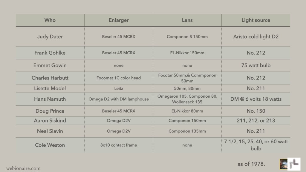 This equipment he takes surprises me: a scanner. His reasoning is to verify that his camera and process are producing useful results. This is a hybrid thinking solution. I carry duplicate cameras. For bellows based cameras, carry electrical tape, or “bellows” patch (scuba glue).