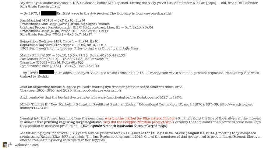 NB: search used this tree [:: Photrio -> koraks ] getting to an answer about magenta dyes used in Kodak dye-transfer, imbibition printing. Photrio is large site with over a thousand posts related to dye transfer; koraks site is listed as sigline in posts by a moderator taking part in dye-transfer related threads over the past several years. I doubt that K~ has ever made a dye transfer, certainly hasn’t synthesized the dyes. Another example of dilution of knowledge.